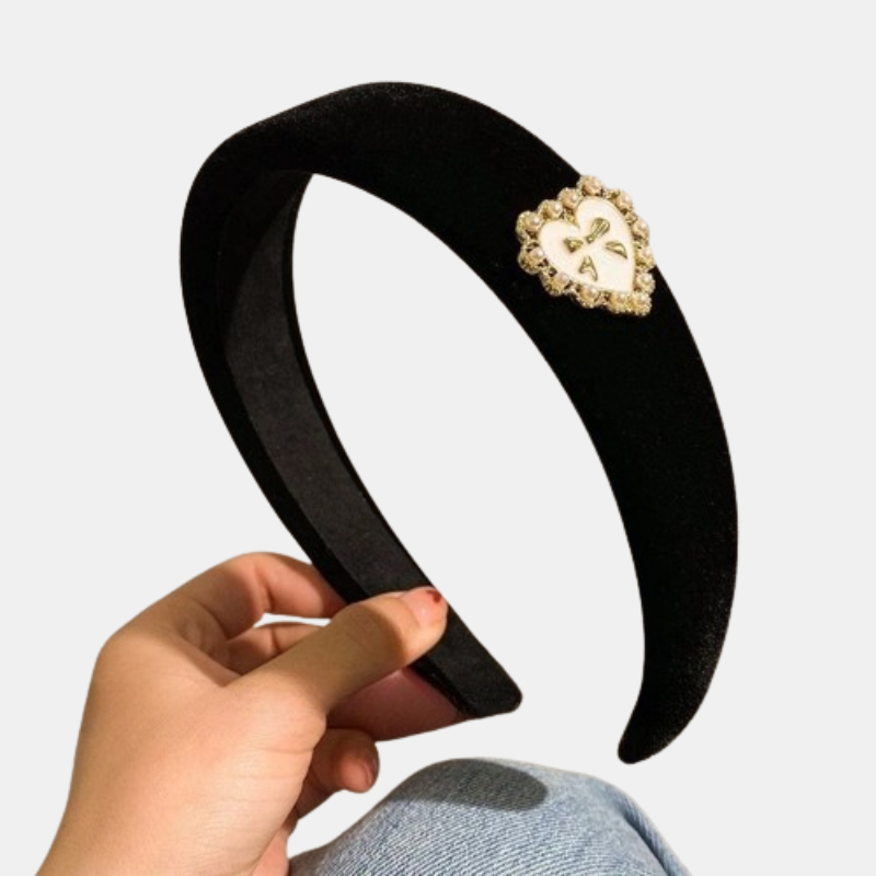 Bờm tóc nhung đen thời trang cao cấp Đen trái tim nơ Mã: CL13